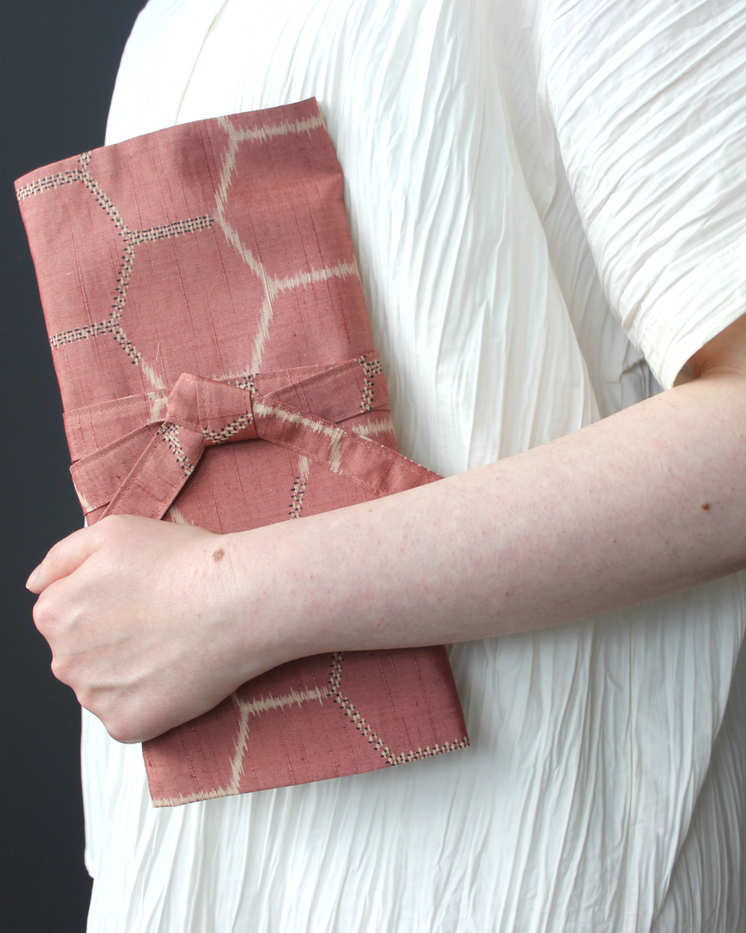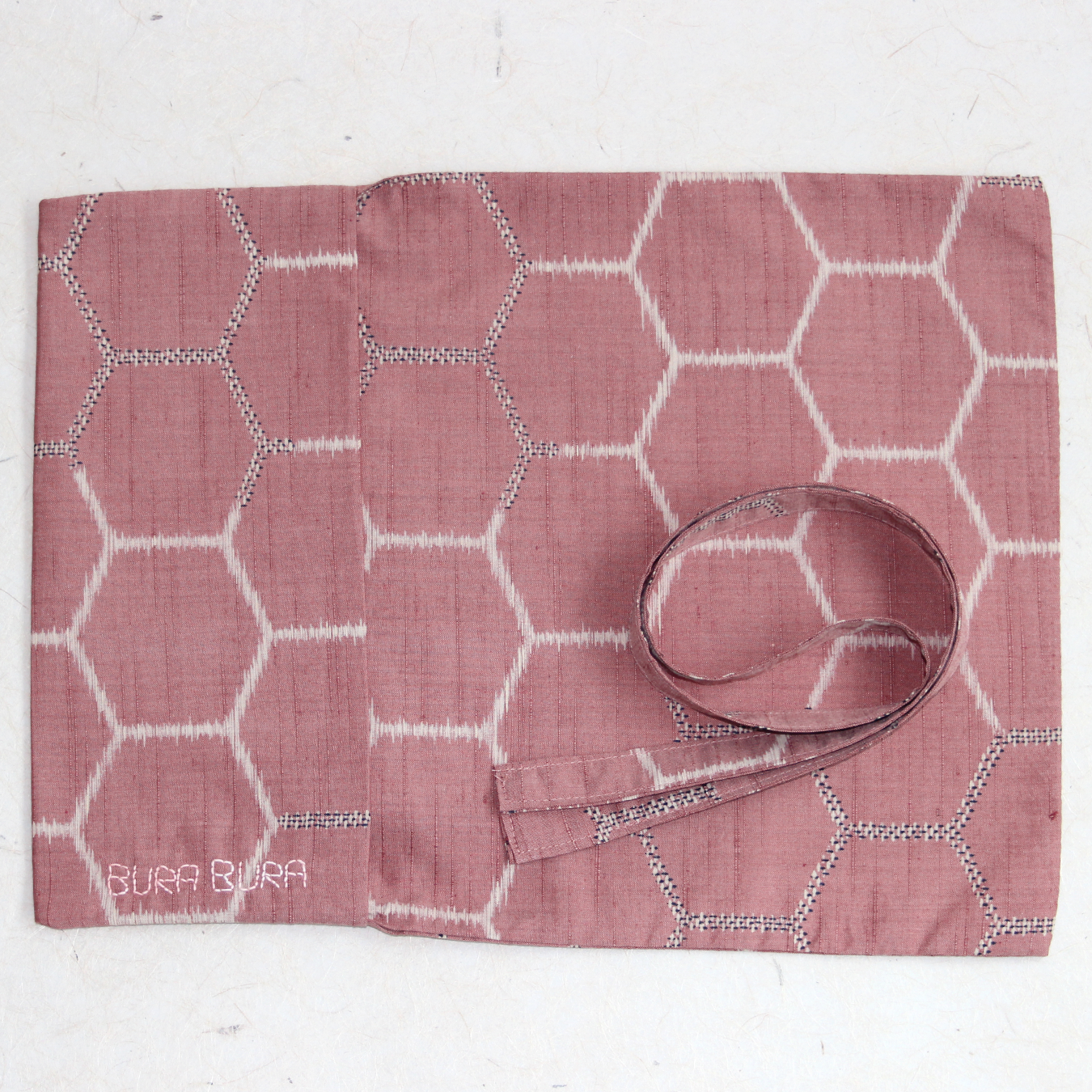 Wrap cover for your journal or book, made from vintage Japanese kimono fabric. The Bura Bura name is hand stitched on the inner sleeve with natural dyed cotton threads sourced from Japan.