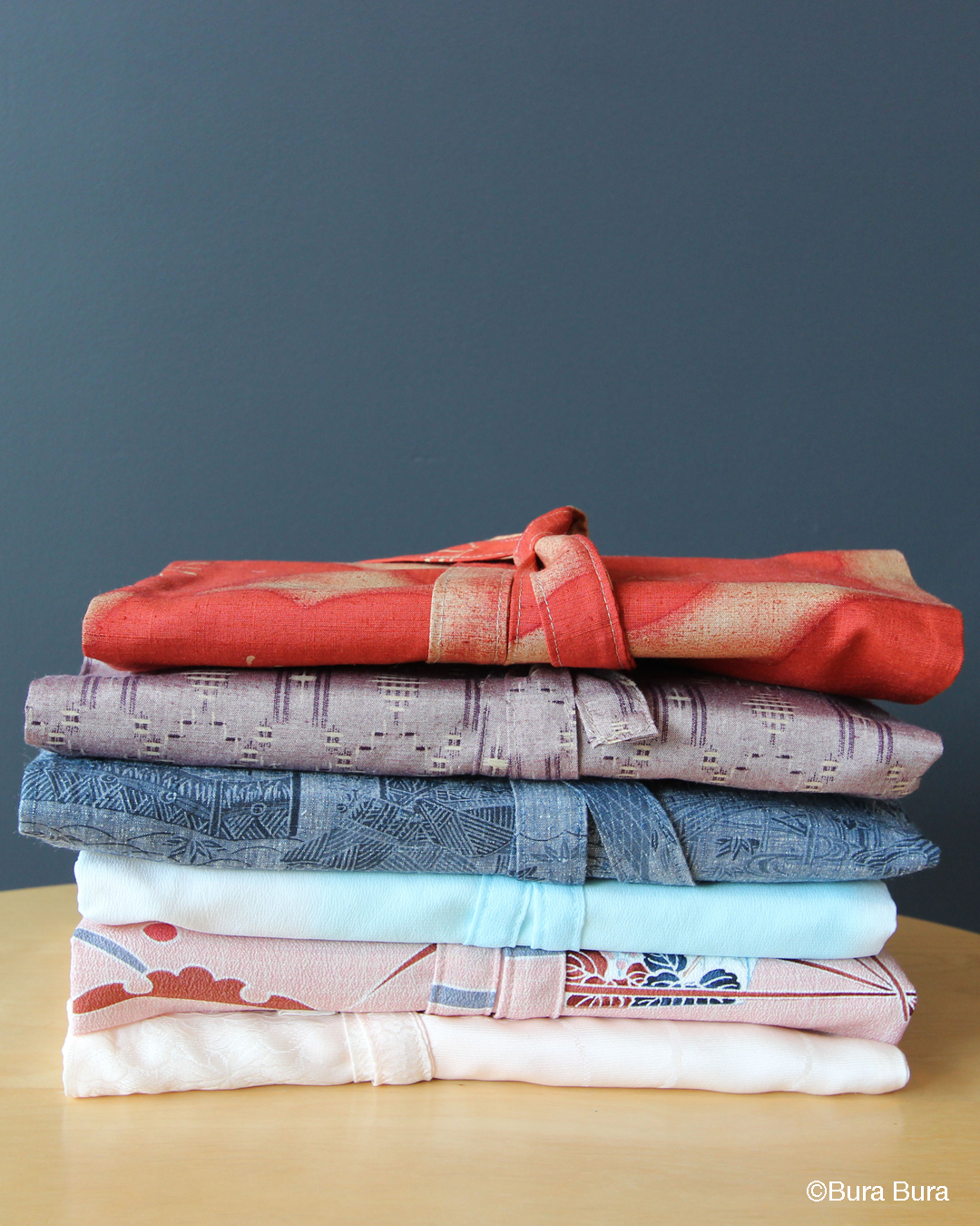 Wrap cover for your journal or book, made from vintage Japanese kimono fabric. The Bura Bura name is hand stitched on the inner sleeve with natural dyed cotton threads sourced from Japan.
